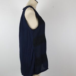 Loft Ann Taylor Navy Top Black Lace Stripe L NWT