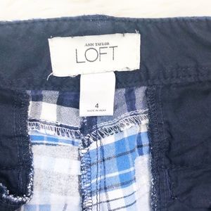 Slightly faded appearance, no holes or stains, usual wear, lightweight. Zip and button closure, 2 side pockets, faux pocket at the back.