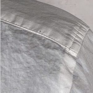 There is a tiny dot on the left shoulder and a light mark on the lower left front near the hem. No other issues.