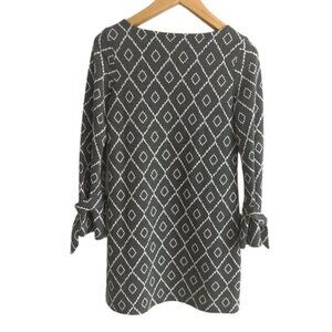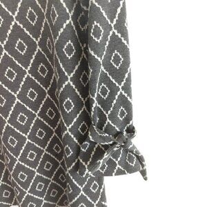 This is a long sleeve knit shift dress in a grey and white geometric diamond pattern by Ann Taylor LOFT.