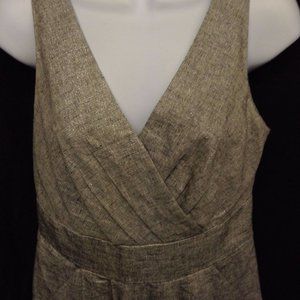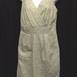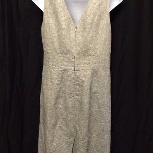 Loft Ann Taylor Women's Dress Silver Metallic Y Neck Sleeveless Linen Sheath 2