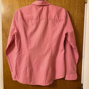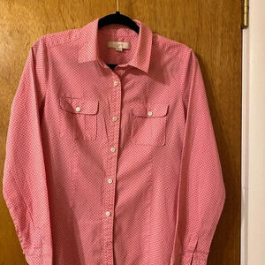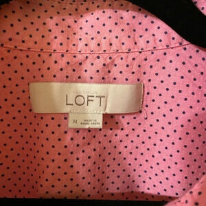 Loft Ann Taylor Women’s Pink/ Black Polka Dot Button Down Cotton Girliecore Top Size Medium