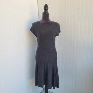 Loft Ann Taylor Wool Blend Charcoal Gray Sweater Dress Stretch Knee Length Sz S