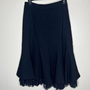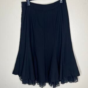 Loft Ann Taylor Wool Midi Skirt 6 Black Lace Trim A-Line Work Chic Minimalist