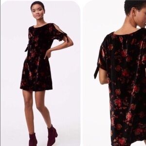 Loft Asian Inspired Floral Velvety Shift Dress Loose Fit Soft Above Knee Large