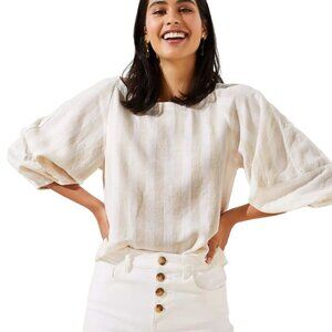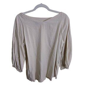 Loft Balloon 3/4 Sleeve Neutral Ivory Linen Blend Blouse Size S