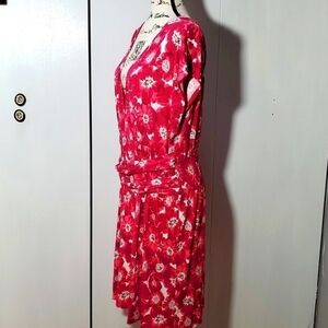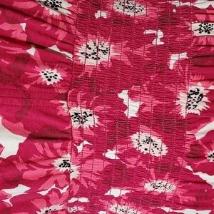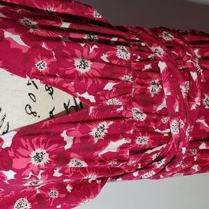 Loft Beach- Bright Deep Pink Floral beach dress Deep V smocking Size. Large