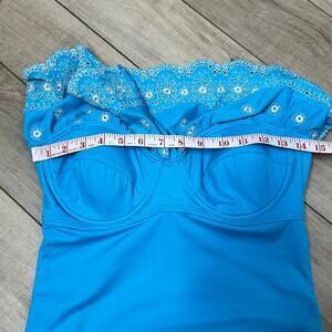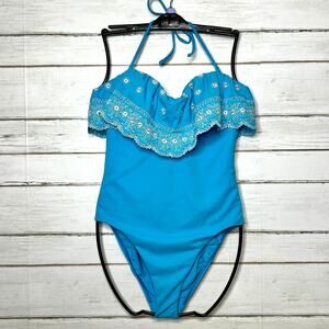 Loft Beach Embroidered Eyelet One Piece Swimsuit Blue Size 80