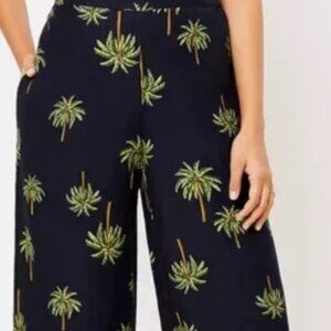 Loft Beach Linen Blend Palm Tree Wide Leg Pants Size S