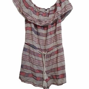 Striped med Beach rompers, off shoulder, frilled ruffles.