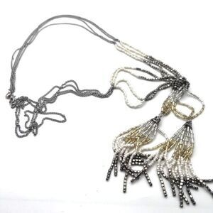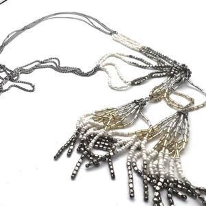 Loft Beaded Fringe Long Layered Twisted Stunning Necklace Silver