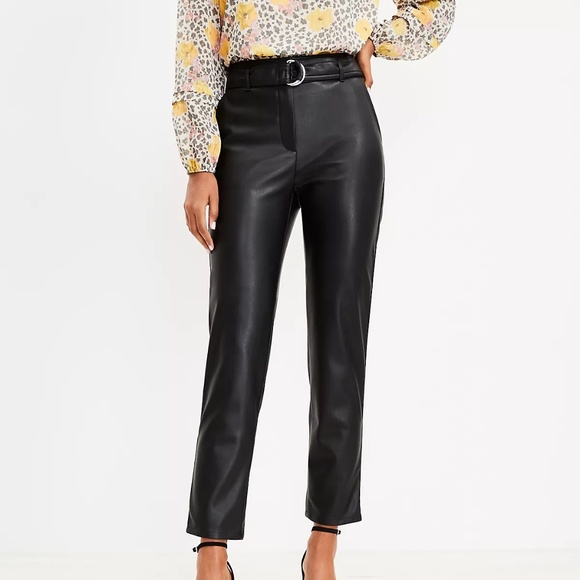 Loft Belted Slim Taper Faux Leather Pant Size 12