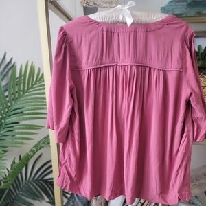 Pre-owned in great condition. Henley top with v neck that has fuctional buttons for closure. Three quarter sleeves. Beautiful dark Rose/ berry color! Flowy and light. Perfect for fall and autumn.