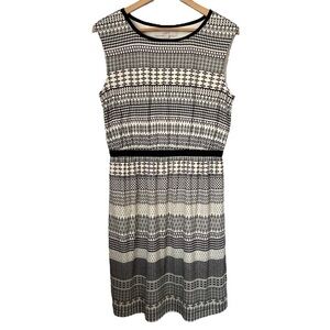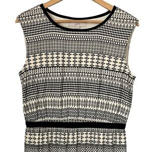 Loft Black & Cream Geometric Patterned Sleeveless Knit Dress Size Medium