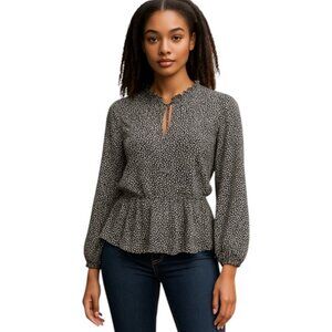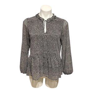 Loft Black Ditsy Floral Long Sleeve Neck Tie V Neck Ruffle Neck Peplum Blouse