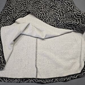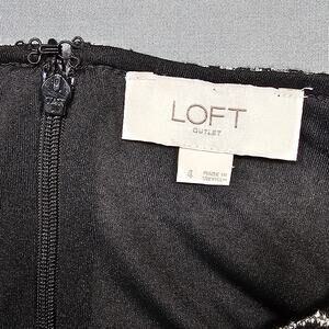Loft Outlet Women's Dress Size 4 Black Midi Silvery Floral Fit & Flare Aline Classic 3/4 Sleeves Zip Lightweight Unlined