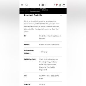 Loft Black Faux Leather shift Skirt Women’s Size 8 pockets zipper vegan