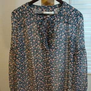 Loft Black Floral Long Sleeves Blouse Top Size S Pullover Tie Front