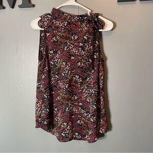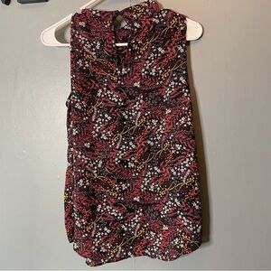 Loft Black Floral Sleeveless Highneck Tank Top size small