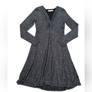 Loft Black Gray Long Sleeve Front Twist Midi Flowy Dress Size S
