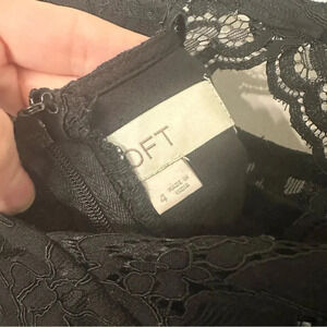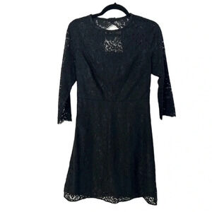 Loft Black Lace 3/4 Length Open Back Black Mini Dress Size 4 GUC