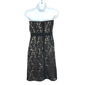 Loft Black Lace Overlay Nude Strapless Cocktail Dress Women's Size 2 NEW with Tags