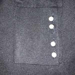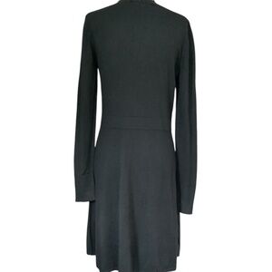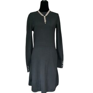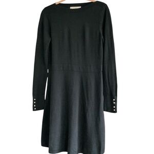 Loft Black Lightweight Knit Long Sleeve Sweater Dress Pearl Button SZ S