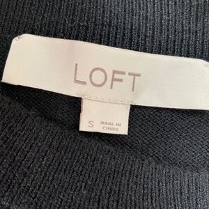 Loft black lightweight knit long sleeve sweater dress. Size small. Pretty faux pearl button detail on cuffs. Boatneck. A line style with flattering knitted band to define waist. Knit banded collar, hem and cuffs. Very soft fabric. Lighter weight perfect for fall and warmer climates. Cute with flats, heels, or boots.