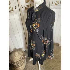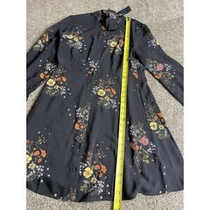 Loft Black Multicolored Floral Long Sleeve Bow Tie Neck Chiffon Dress Size 6