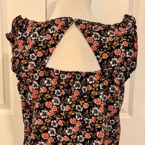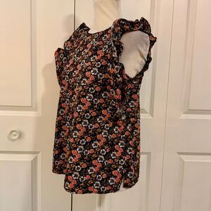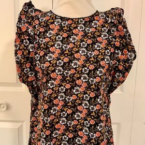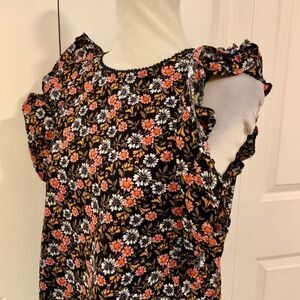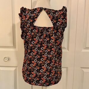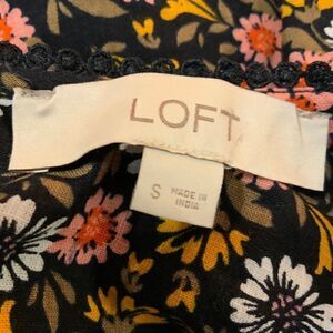 Loft Black Pink Floral Ruffle Trim Cotton Top Small