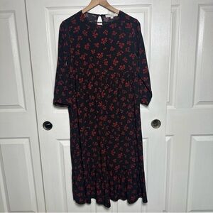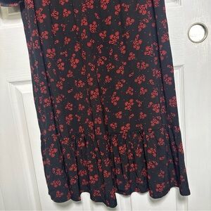 Loft Black Red Floral Tiered Maxi Dress XS Prairie Cottagecore Bohemian Boho