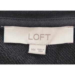 Loft Black Red Plaid Ruffled Hem Top M Faux Button Side Details Round Neck