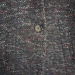 Elevate your winter wardrobe with this gorgeous black and red woven wool blend tweed coat from Loft. The mid-length coat features long sleeves, a single button closure, and a classic fit. The coat is perfect for travel, casual outings, workwear, and business attire.
