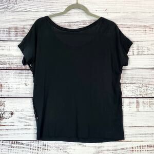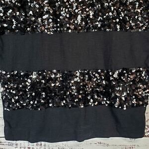 Loft Black Sequin Sparkle Holiday T Shirt M Shimmer Striped Chic Edgy Party Top