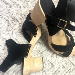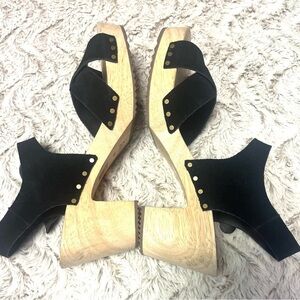 Loft Black Suede Ankle Strap Chunky Wooden Sandals Classy Chic Women’s Size 10