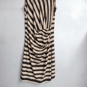Loft Black & Tan Diagonal Stripes With Ruching At the Waist Size S