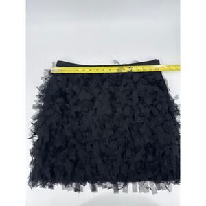 Flirty and fun LOFT mini skirt featuring layered tiered fringe/tulle texture for movement and drama. Fully lined with a smooth side zipper closure for a flattering fit. Perfect for parties, date nights, bachelorette events, or styled casually with boots and a sweater.
