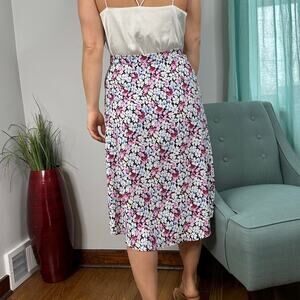 Loft Black White Blue & Purple Floral Wrap Knee Length Skirt