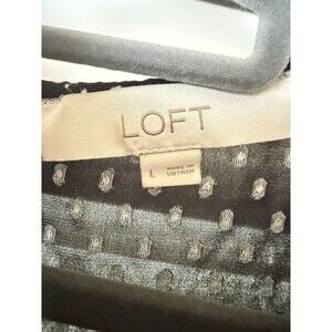 The top features a polka dot pattern, round neckline, and button closure, giving it a classic and chic look. Made from a blend of polyester and rayon chiffon, this blouse is lightweight and easy to care for, making it a great addition to any wardrobe. The ruffle accents add a touch of flair, while the sheer fabric adds a touch of elegance. Ideal for summer, fall, or spring, this top from Loft is perfect for everyday wear or a party.