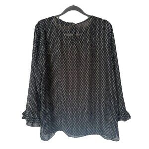 Loft Black/ White Chiffon 3/4 Sleeve Top Sz Large