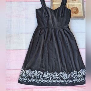 Loft Black & White Floral Embroidered Fit & Flare Sundress Dress, women's size 10