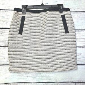 Loft Black White Metallic Stripe Tweed Skirt 10