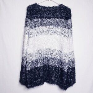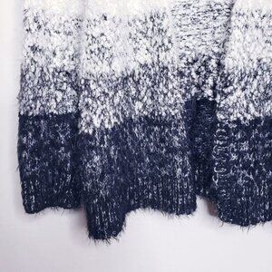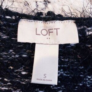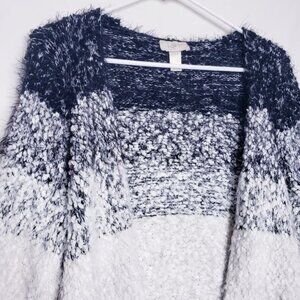 Loft Black & White Stripe Open Front Fuzzy Eyelash Cardigan Women's Size Small