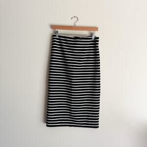 Loft Black + White Striped Form Fitting Pencil Skirt - Small