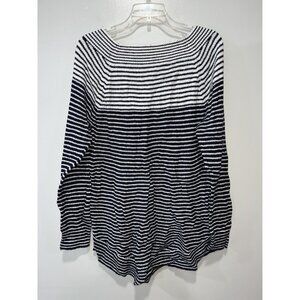 This Loft sweater features classic black and white stripes, offering a timeless and professional look. Made from a comfortable cotton blend, it provides warmth and style, suitable for various occasions. The XL size ensures a relaxed fit, ideal for layering during cooler months.