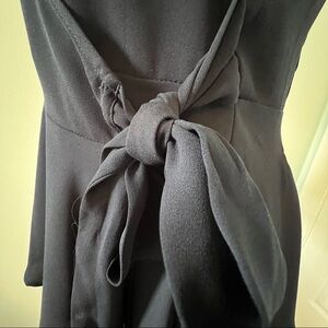 Ladies black V - Neck blouse Ruffled sleeves Waist wrap tie