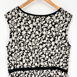Loft Black and Cream Floral Sleeveless Sheath Dress Size L