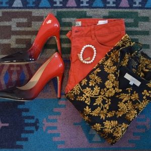 Beautiful black and gold tank top by Loft. XS flowy and very comfortable. Black with velvet gold detail just in time for the holiday season. Looks good on its own or as a layered piece. This is new and has never been worn but does not have tags. No defects.