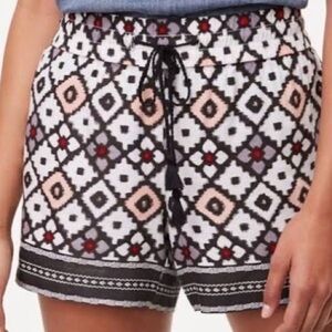 Loft Black and Pink Aztec Print Patchwork Linen Blend Shorts