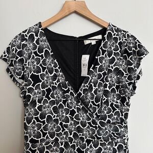 Details: Adorable wrap-style dress from Loft! Sleeves are slightly fluttery, wrap-style top, and flowy bottom. Top is lined. Concealed zipped in the back. Lightweight, but also flowy and stretchy. Purchased for $60.
